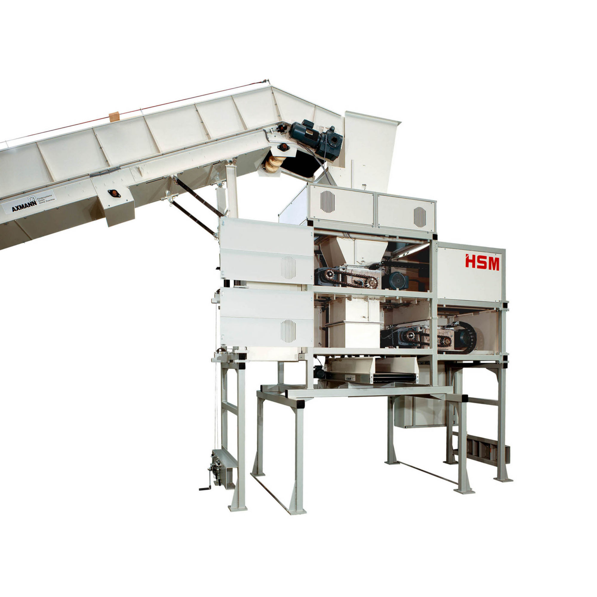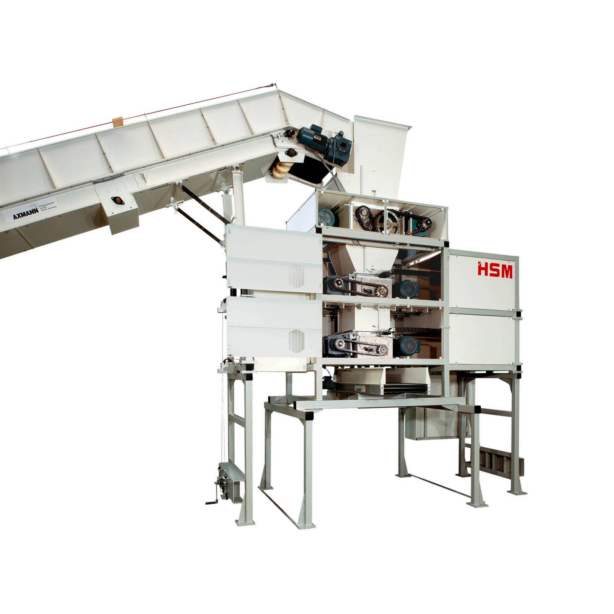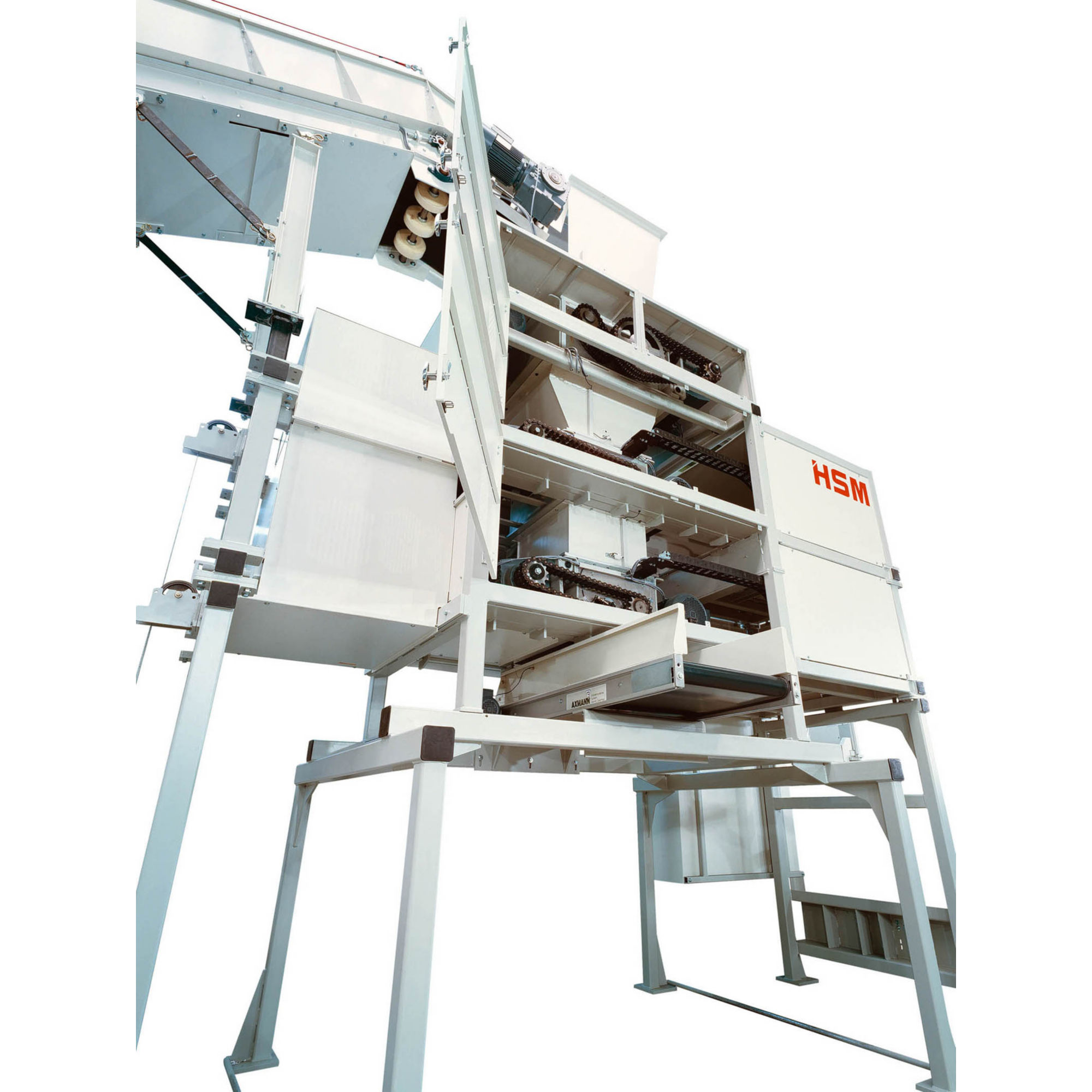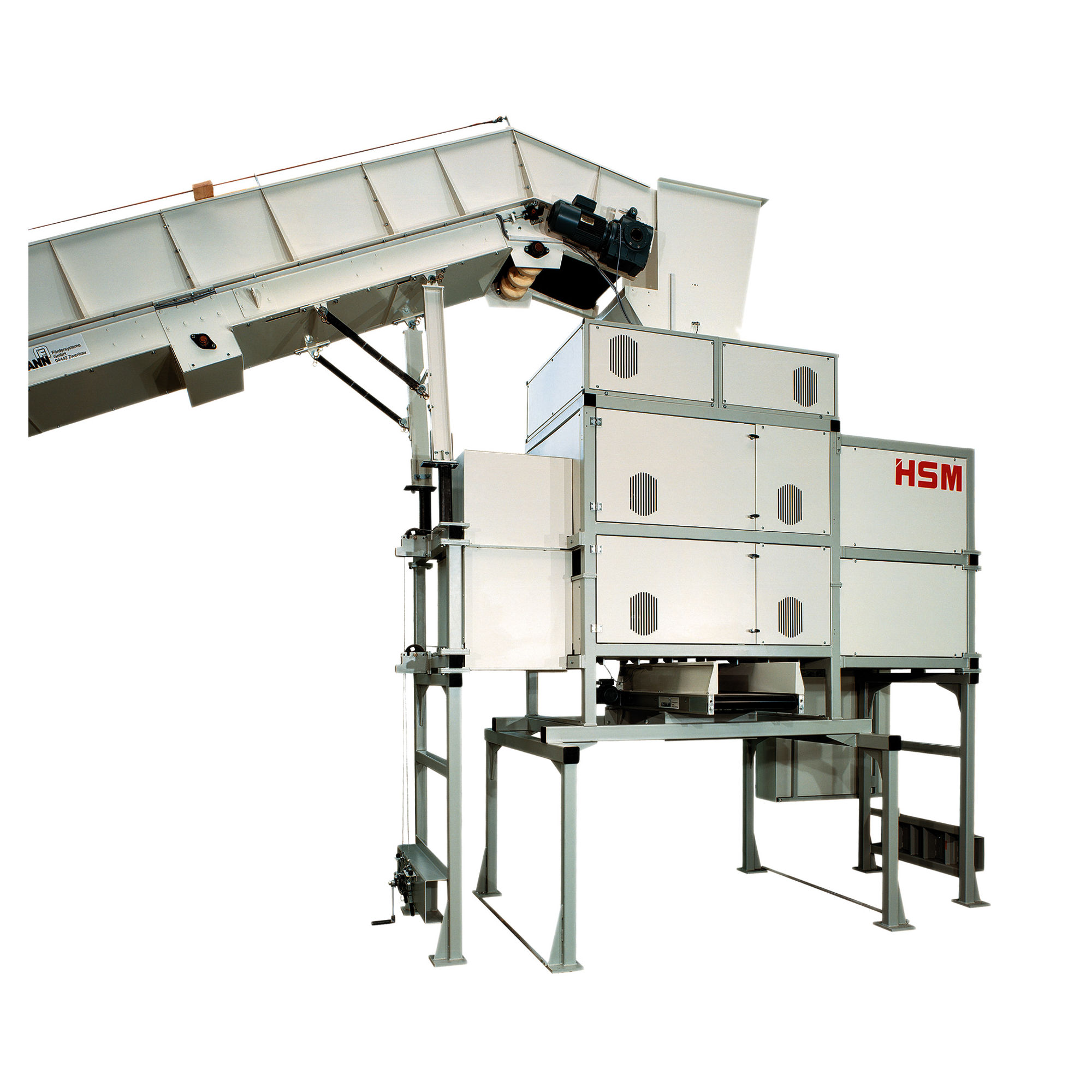 - Materyallerin taşıma bandından HSM V 600 ön parçalayıcıya aktarılması için dayanıklı yükleme hunisi.