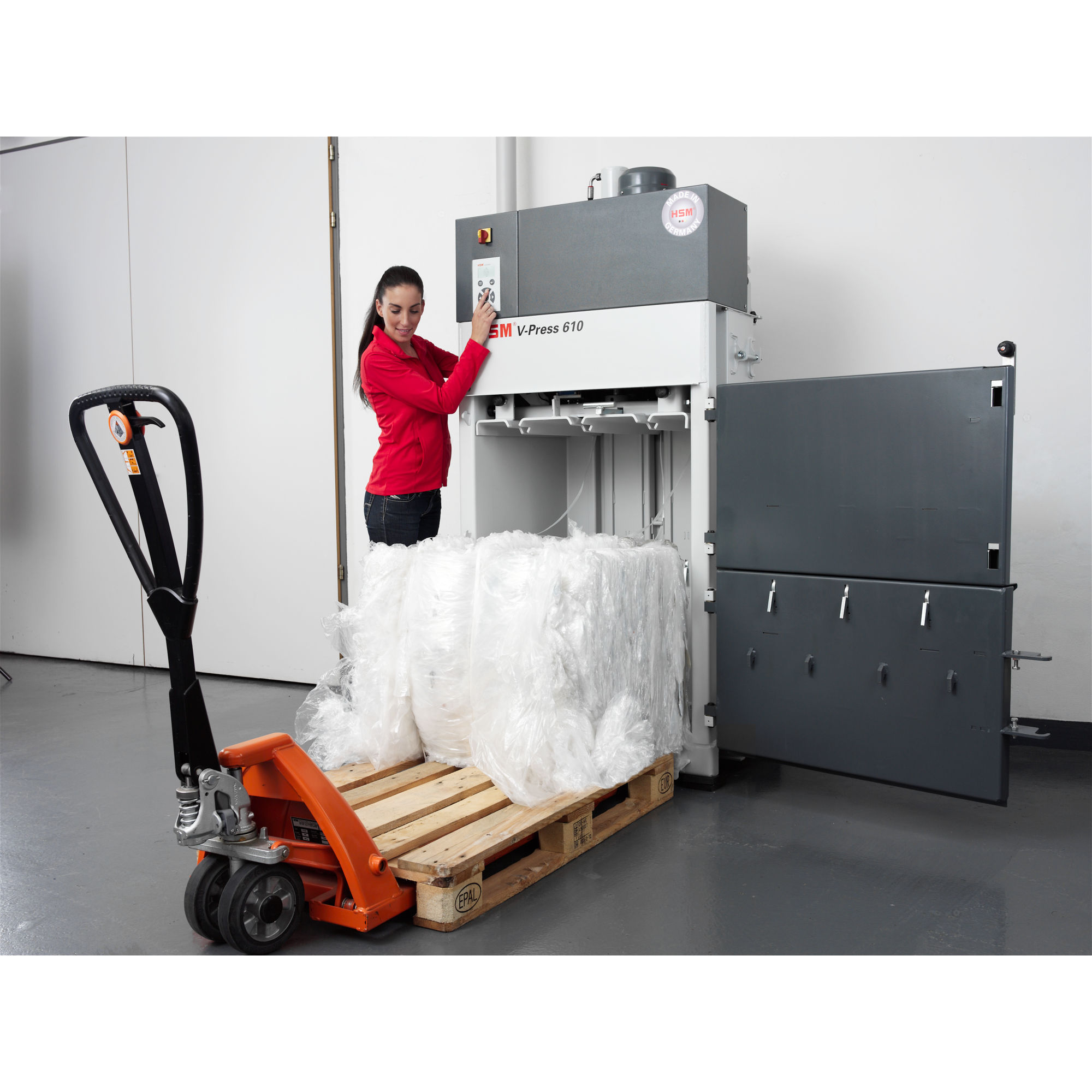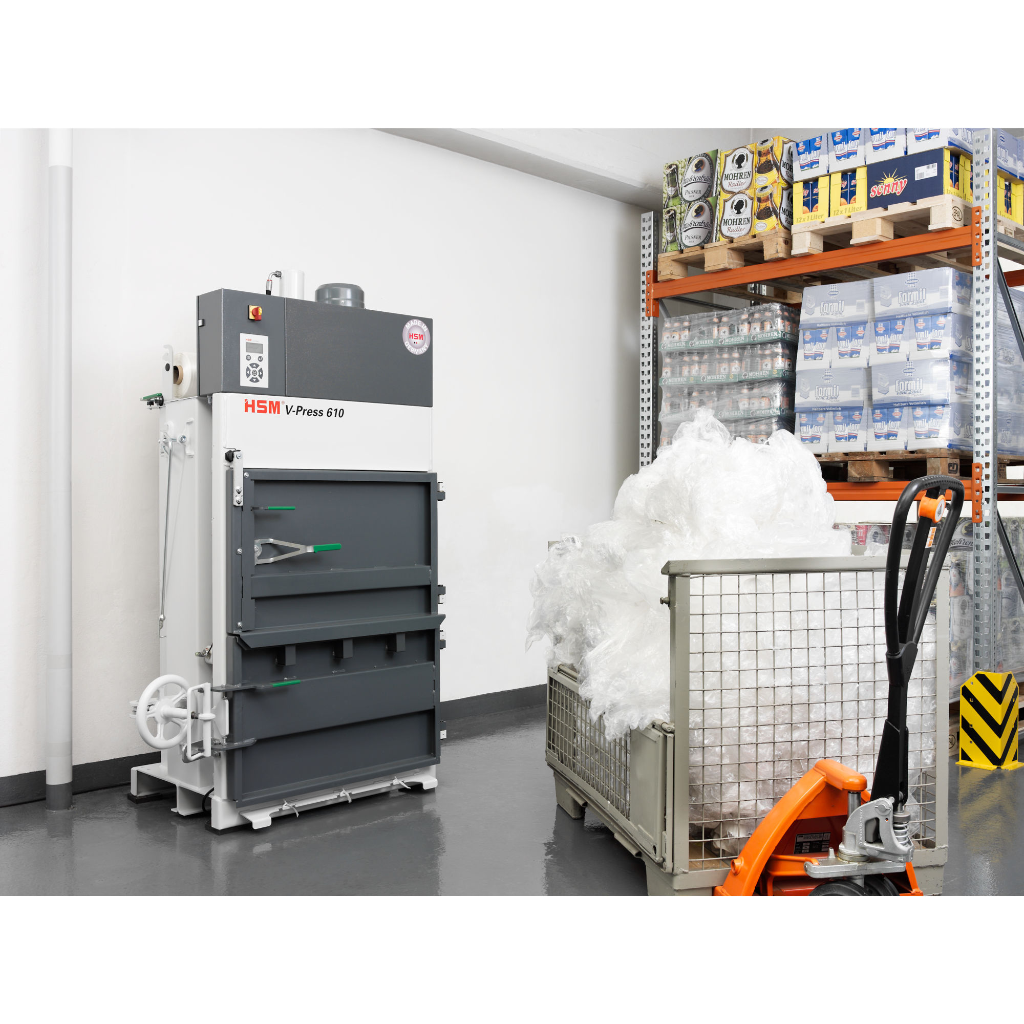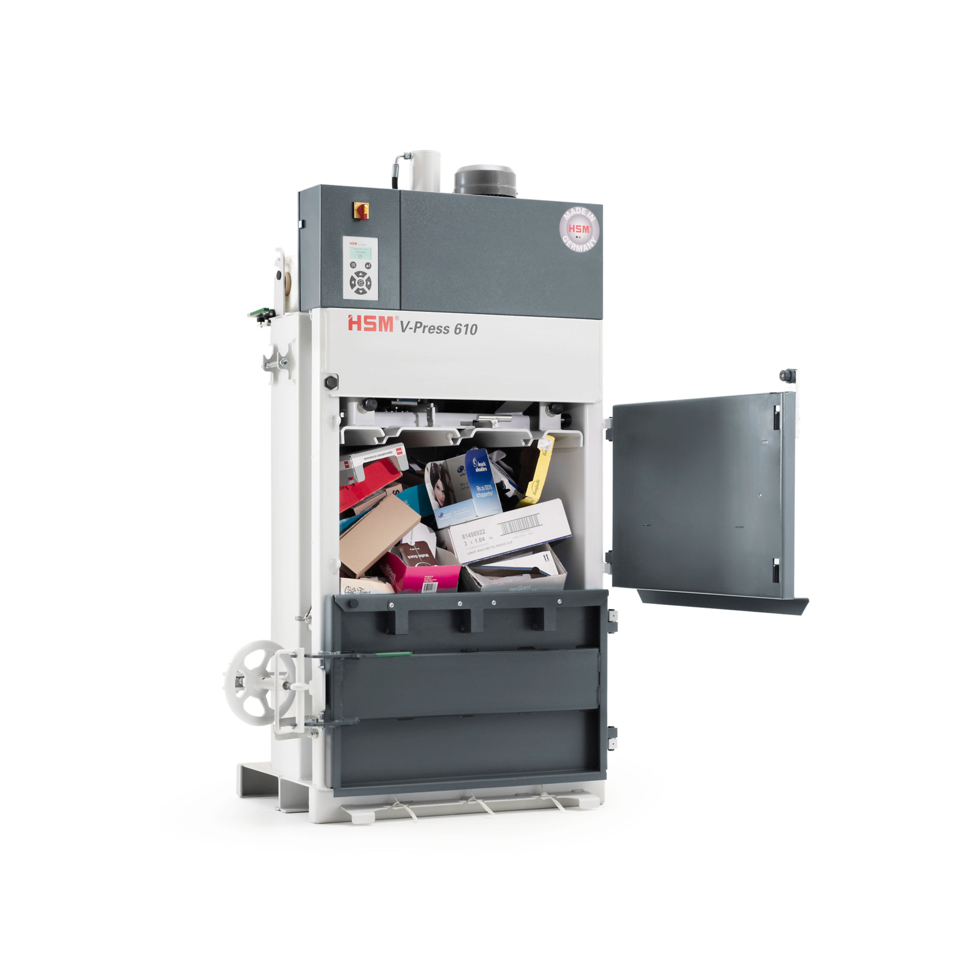 HSM V-Press 605 ve HSM V-Press 610 modelleri karton ve folyo hacimlerini ekonomik bir biçimde azaltır.