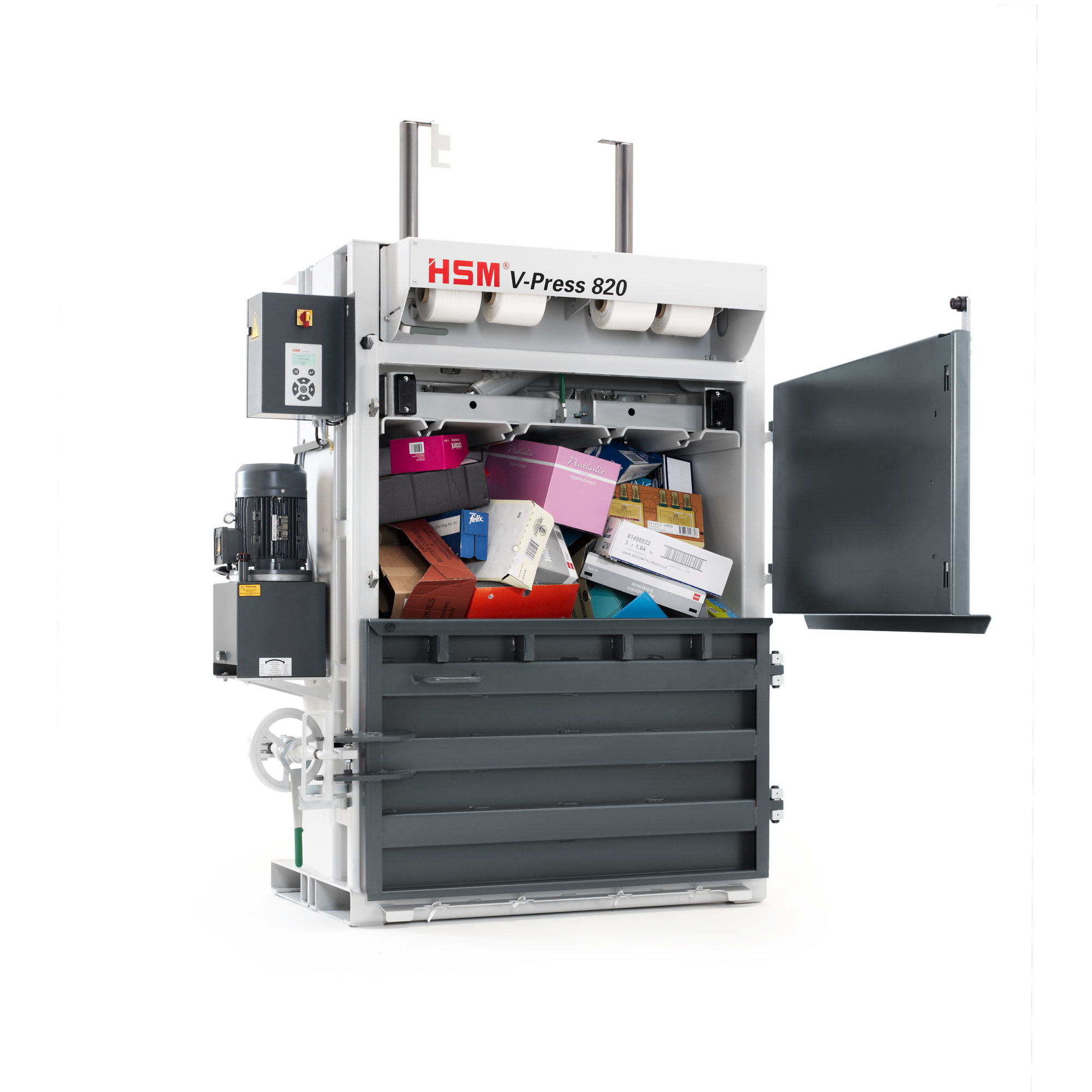 HSM V-Press serisi dikey balyalama presleri her çalışma alanına uygun boyutları, yüksek kapasiteleri ile kullanıcıya verimli çözümler sunar. Tesisinizdeki ambalaj malzemesi hacmini %95 oranında azaltabilir.