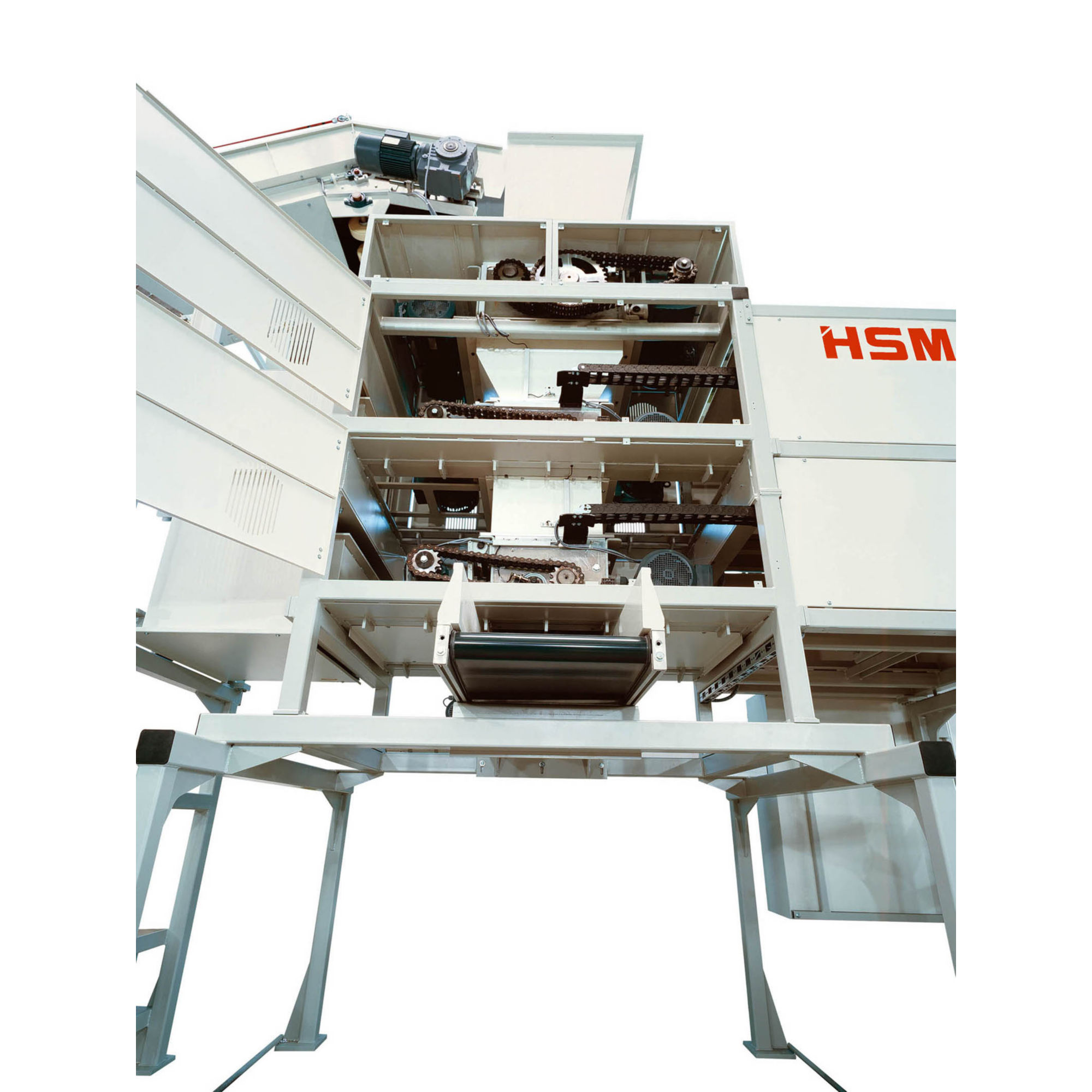 - Materyallerin taşıma bandından HSM V 600 ön parçalayıcıya aktarılması için dayanıklı yükleme hunisi.