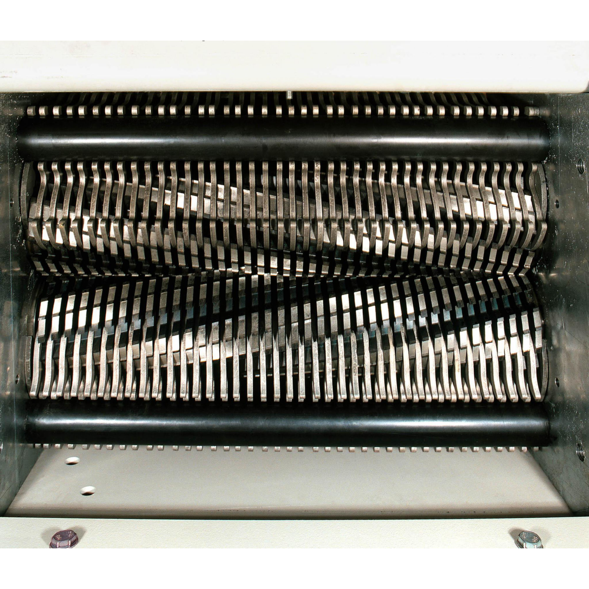 - 1. Aşama: iki alım şaftı ve iki kesim şaftından oluşan dört şaftlı kesim sistemi ile materyal beslemeyi kolaylaştırmak için ön kesim yapılır.