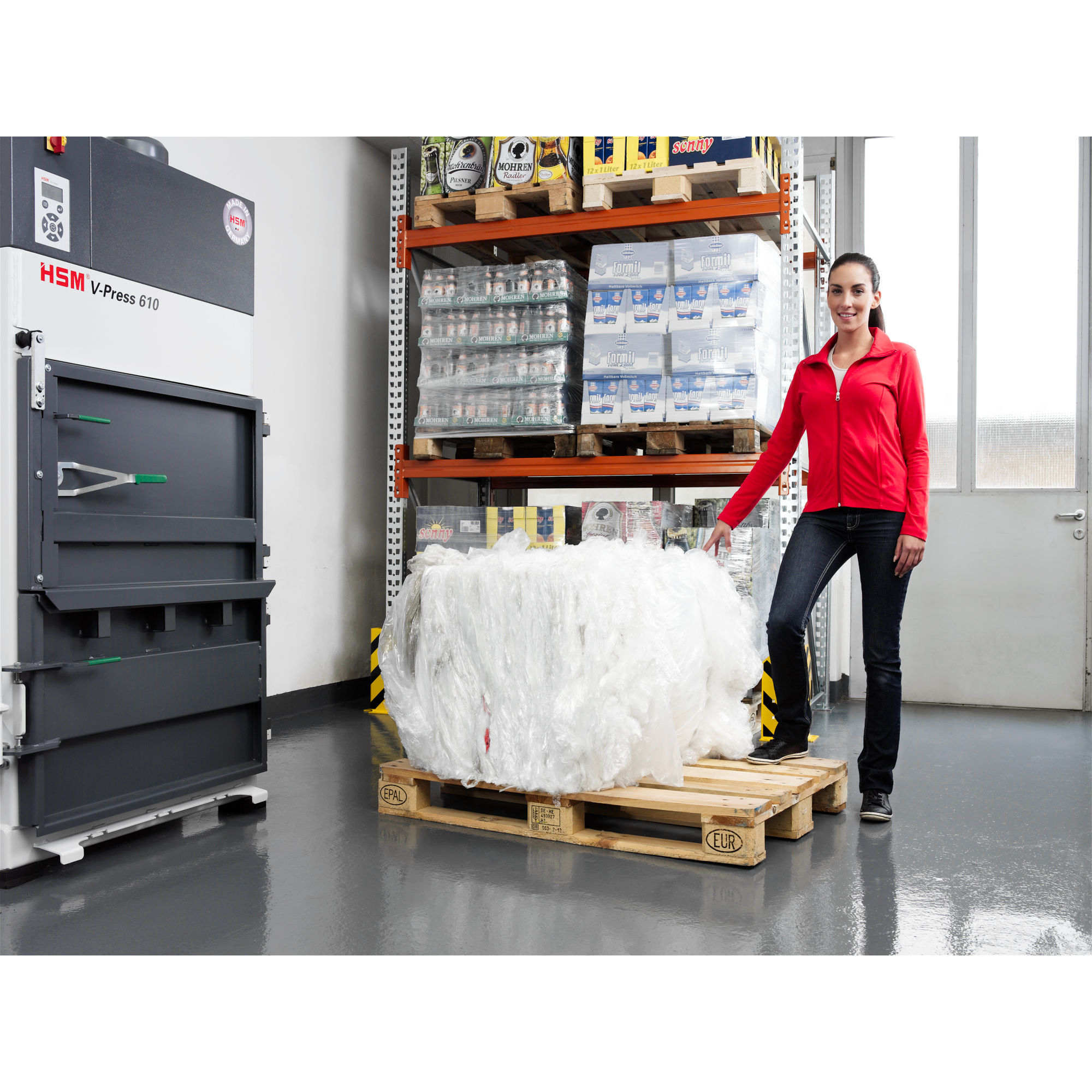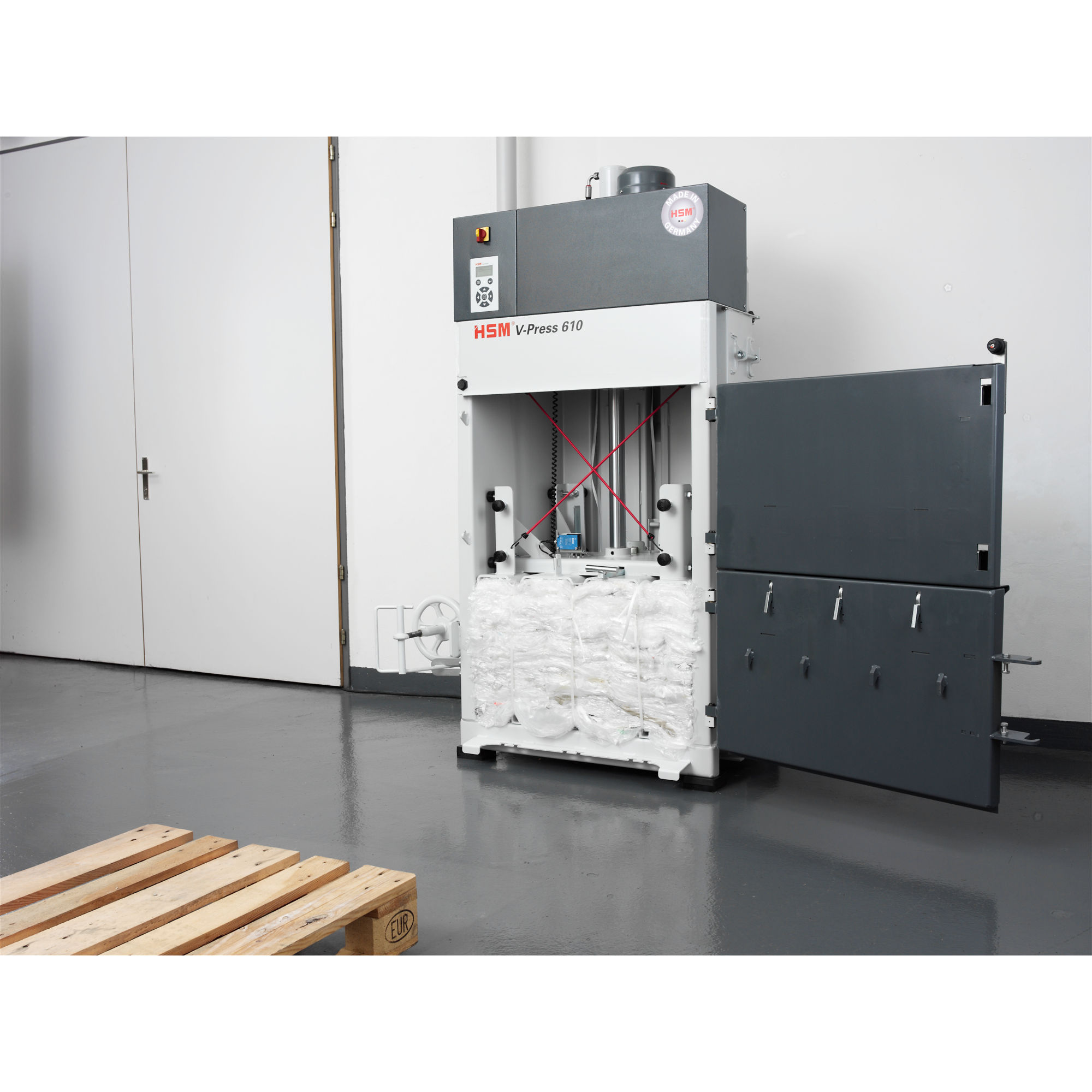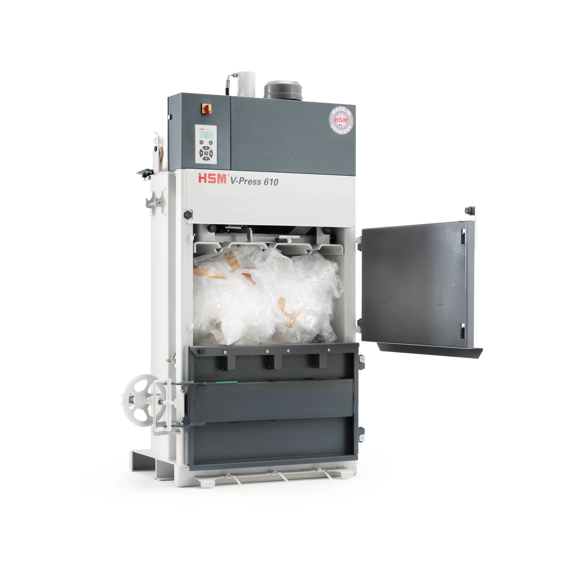 HSM V-Press 605 ve HSM V-Press 610 modelleri karton ve folyo hacimlerini ekonomik bir biçimde azaltır.