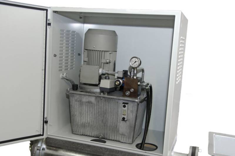 PE tipi hidrolik etiket preseleri içerisinde içeriğin sıkıştırılması ve taşınması bir piston yardımı ile gerçekleşir. Sıkıştırma ve sıvı boşaltma işleminin seviyesi her seferinde kontrol noktası üzerinden ayarlanabilir. Pres pistonu ne kadar uzun süre ile ön konumda olursa içeriğin sıkıştırılması ve sıvıların çıkarılması işlemi o denli güçlü olur. Çıkarılan etiketler temizlik makinesine iletilir, preslenir ve damlatma yapmayan bir konteyner içerisine yerleştirilir. Bir hidrolik silindir yardımı ile preslenmemiş etiketlerin hacmi yaklaşık %30 seviyesine iner, bir başka deyişle %70 oranında bir yer tasarrufu sağlanır. Dışarı preslenen alkali çözeltisi toplanır ve daha sonra temizleme makinesinin içerisine geri pompalanır. Çok miktarda etiket taşıma bandı üzerinde bir araya toplanır.