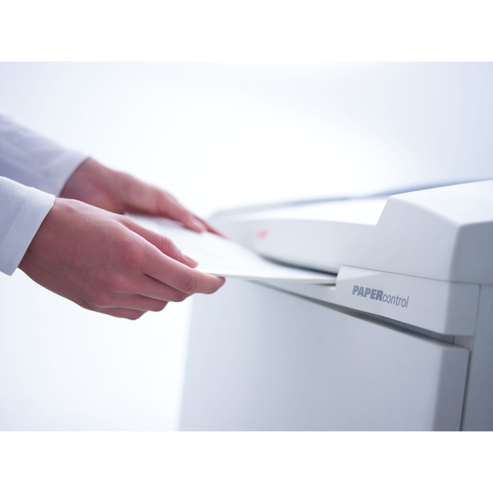 - Kağıt kalınlığını ölçen “PAPERcontrol” işlevi, belli bir kağıt yığınının tek bir işlemde imha edilip edilemeyeceğini belirtir.